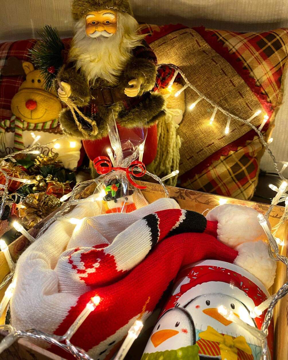 порцеланова чаша - един брой коледни чорапи - един чифт ( размер на чорапите от 36 до 46 ) канелена курабийка - един брой ( съставки - мед, канела, захар, масло и яйца )